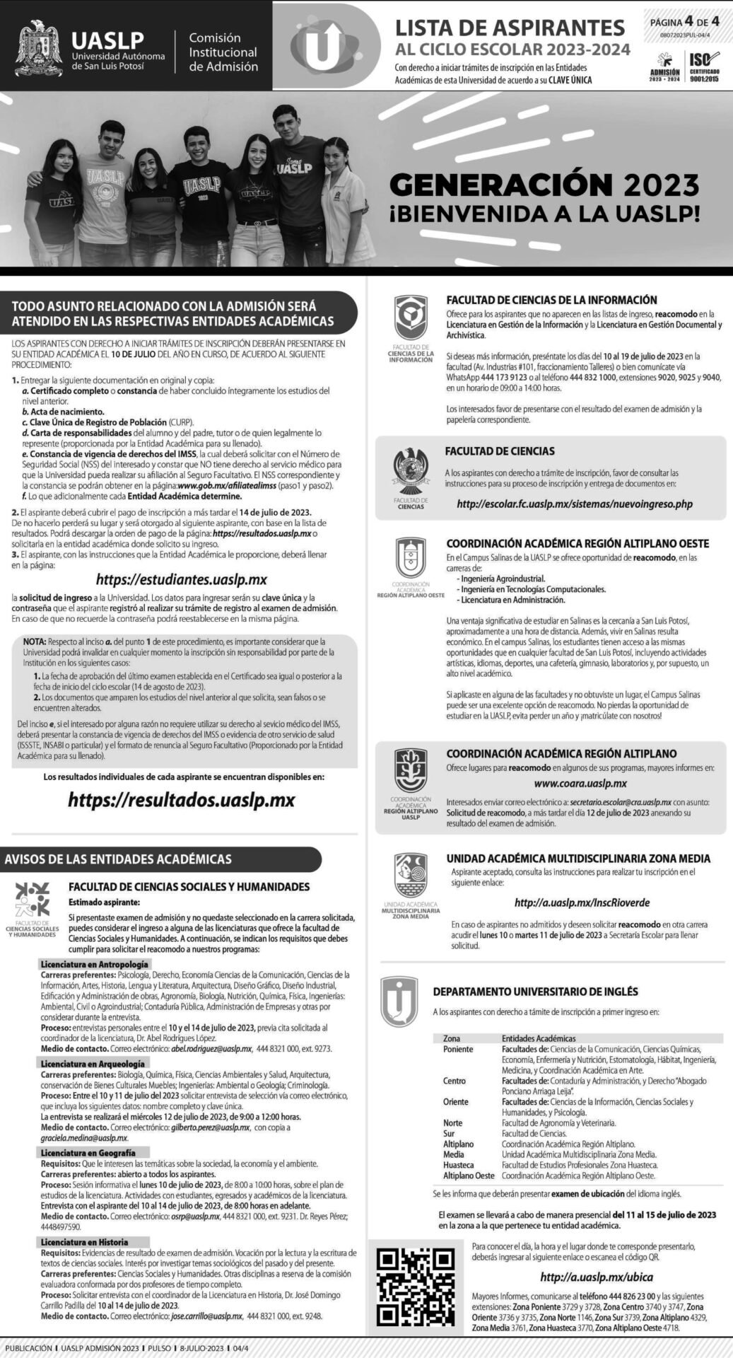 ¡Enhorabuena por tus resultados en la admisión a la UASLP 2023!
